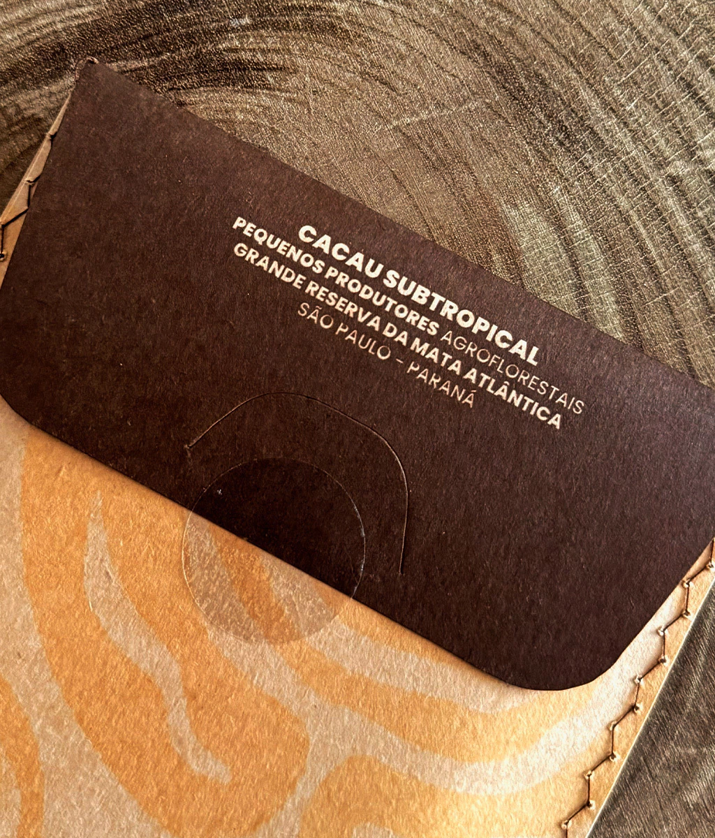 Chocolate branco feito com manteiga de cacau do Vale do Ribeira e cupuaçu brasileiro, que traz leve acidez e frescor natural. Cremoso, equilibrado e sem aditivos industrializados, revela um encontro delicado entre doçura e fruta. Cada barra contém 70g.